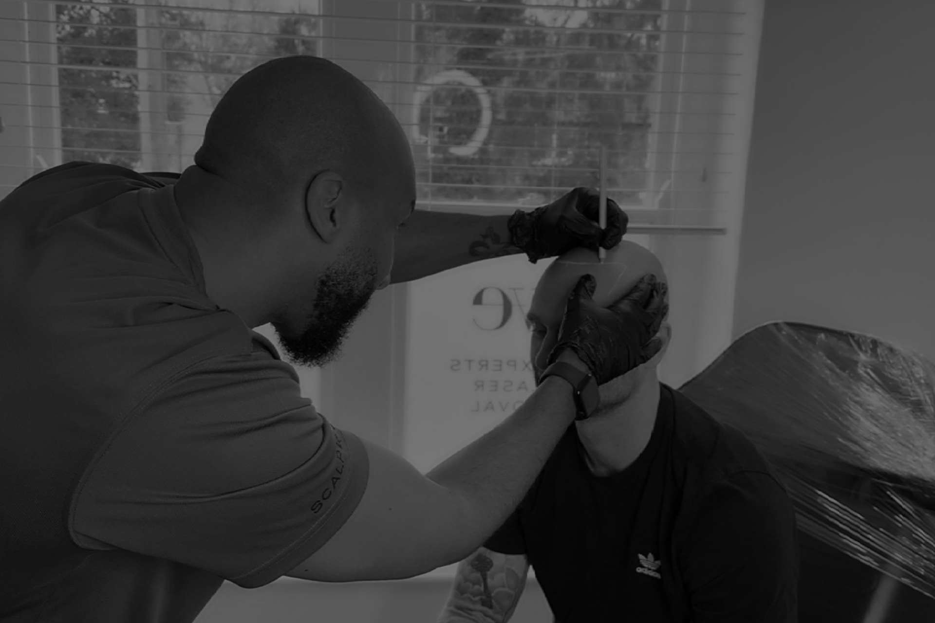 Following on from your consultation, we will begin your scalp micropigmentation treatment by building your hairline and outlining all the sections that need work. Once confirmed and you are happy we would then proceed to match our pigment to your hair follicles. Then start the procedure that will last around 2-3 hours.